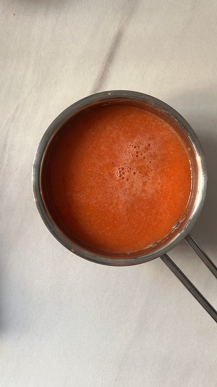 Tritura con una mini primer (batidora manual) hasta obtener un puré, cuela la mezcla a través de un colador fino.